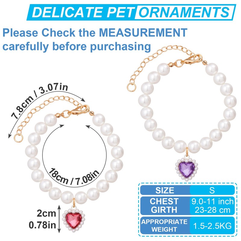 - Adjustable Size: The cat pearl necklace collar is designed for pets with a neck range of 9" to 11" and is easy to put on and take off. Please confirm the neck range of pet before purchasing.