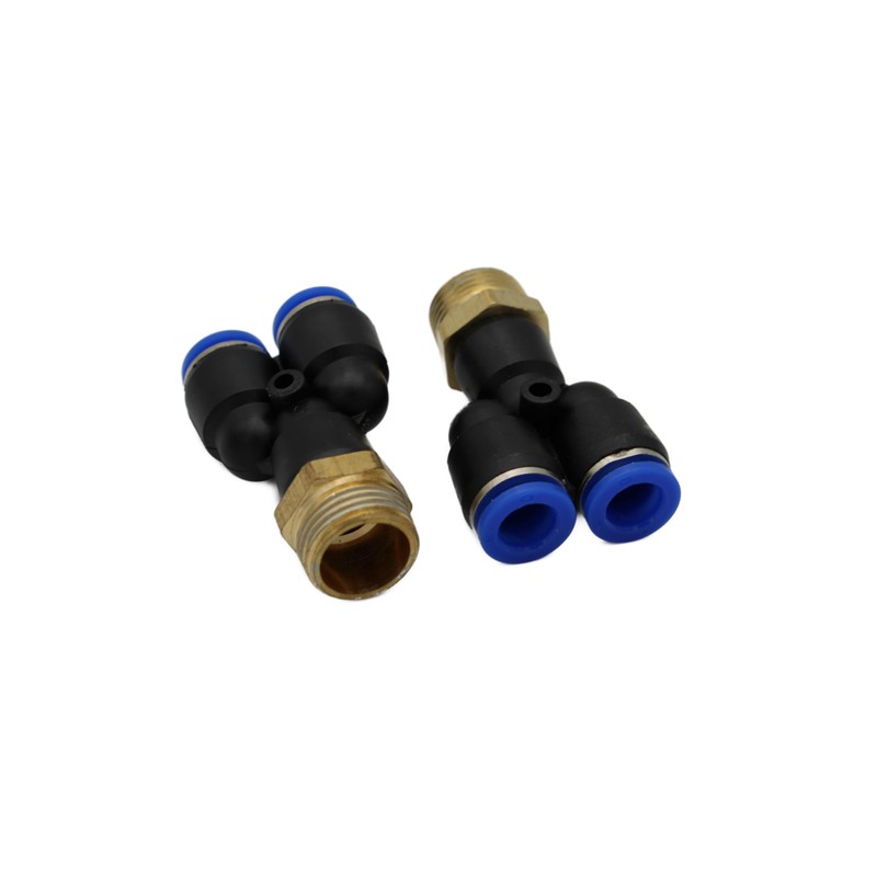 - Quality and free: the pneumatic Y-compressed air fittings are made of high-quality materials. Body: PA66, brass, release ring: PA 66, seal: NBR, stainless steel retaining claws. For a reliable and secure connection of your compressed air line.