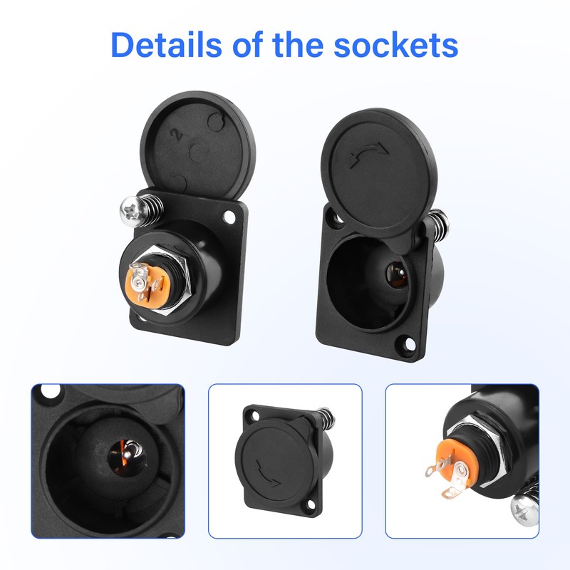 - Easy to operate and can be easily completed without the need for professionals. Simply insert the tin plated bare wire into the plug and weld it together. Drill a hole on the base panel, and then use two screws to secure the DC socket base to the panel for use
