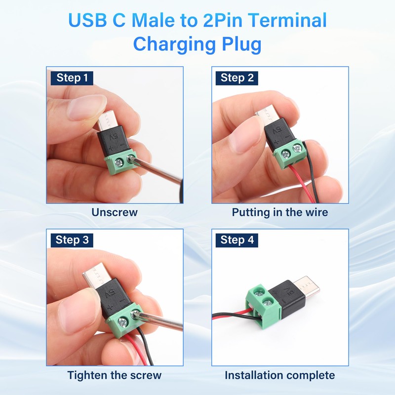 PNGKNYOCN USB-C-Schraubklemmen-Adapter, 5 V, USB-Typ-C-Stecker auf 2-polig, lötfreier Terminalstecker für Heimwerker oder Reparatur, USB-C-Anschluss (4 Stück)