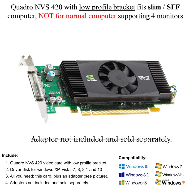 PNY Quadro NVS 420 PCI-Express x 16 Card, With Low Profile Bracket For Slim / SFF Computer