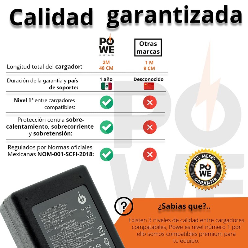 • Producto de alta calidad, para ser usado como reemplazo de su cargador original.