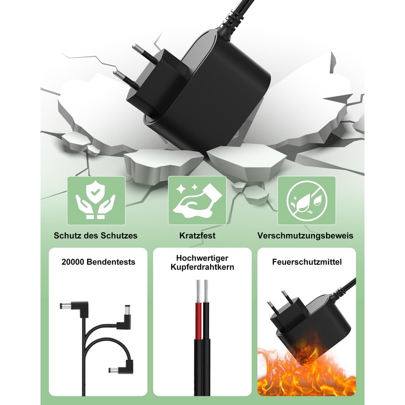- Practical cable length: the power supply cable charger has 1.8 m long cable and provides flexibility and sufficient range.