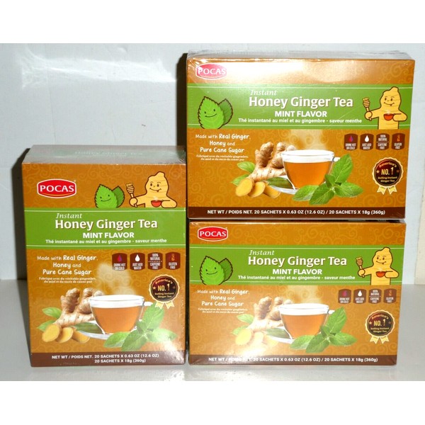 POCAS (3) boxes POCAS Honey Ginger Tea Instant Honey Ginger Tea sachets MINT FLAVOR