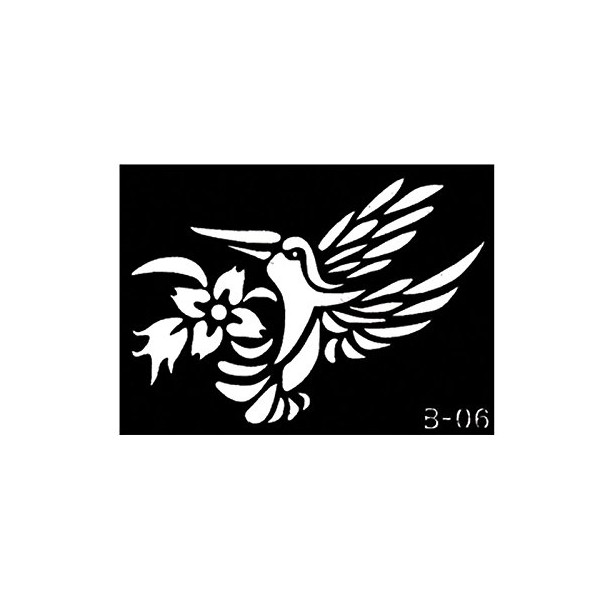 - Pochoir oiseau Colibri pour le Corps format 3'' X 4'' B-06 (PCB-06). Réalisez de magnifiques tattoos temporaires à l'aérographe avec ce pochoir !