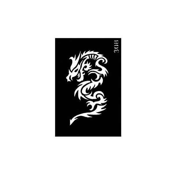 - Pochoir pour le Corps format 3'' X 4'' #308 Dragon Chinois. Réalisez de magnifiques tattoos temporaires à l'aérographe avec ce pochoir ! Réutilisable.