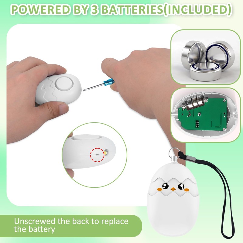 - Multifunctional design: the personal alarm can be used as an LED torch in emergencies. It is very suitable for maintaining safety when unlocking the front door late at night, while it is suitable for night walks or other emergencies. The shrill alarm is powered by 3 LR44 batteries (included).