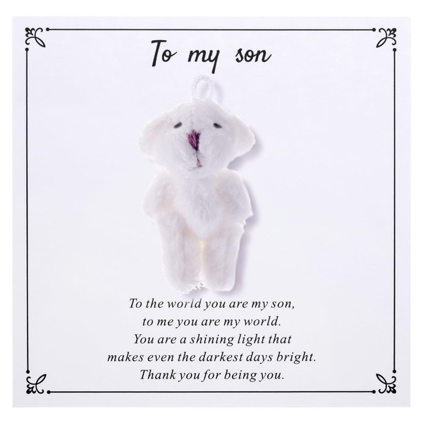 - Perfect Gift for Sons of All Ages -- This gift is versatile and appropriate for sons of all ages. Whether it's a young child, teenager, or adult son, the plush bear plush is a meaningful gesture that taps into the universal need for love, comfort, and encouragement. The heartfelt card helps express feelings that are often hard to articulate, making it the perfect gift for birthdays, holidays, or any occasion when you want to show your son how much he means to you.