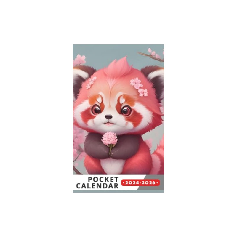 Pocket Calendar 2024 - 2026 With Moon Phase: Three-Year Monthly Planner for Purse , 36 Months from January 2024 to December 2026 | Chibi red panda | Sakura blossoms