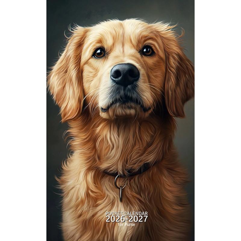 Pocket Calendar 2026-2027 for Purse: Small 2 Year Monthly Planner from January 2026 to December 2027 with Holidays, Golden Retriever Cover Design