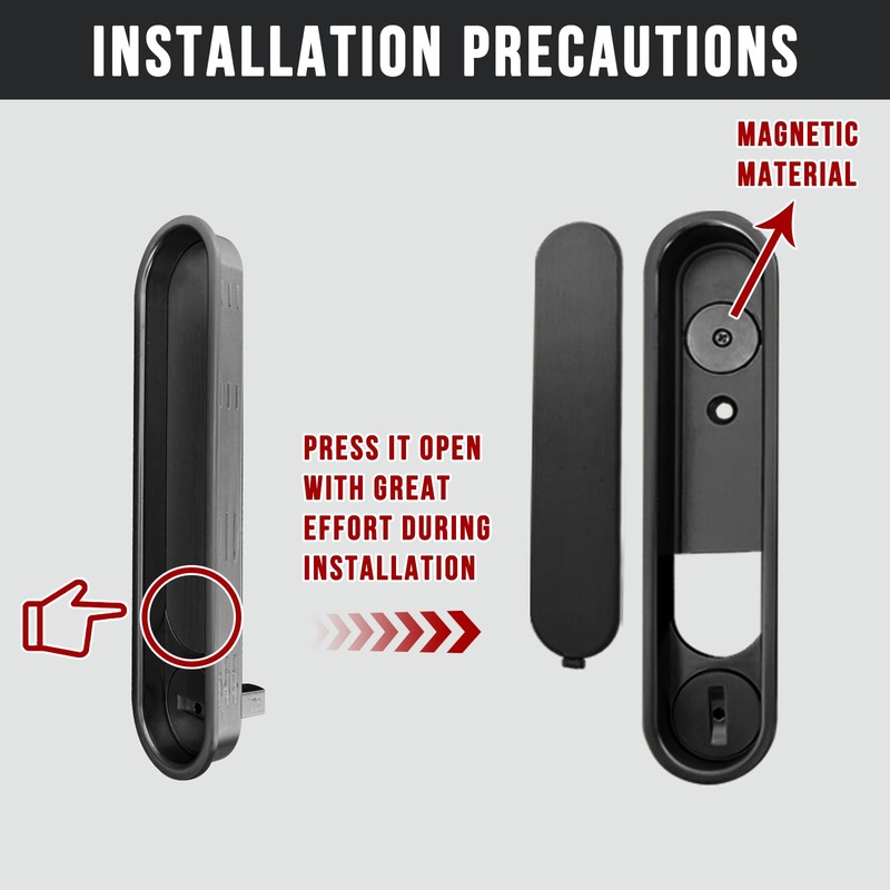 - What You Get:2* Magnetic cover handle, 1* Lock body, 1* Buckle box, 1* Buckle plate, 1*Installation menu, several installation screws