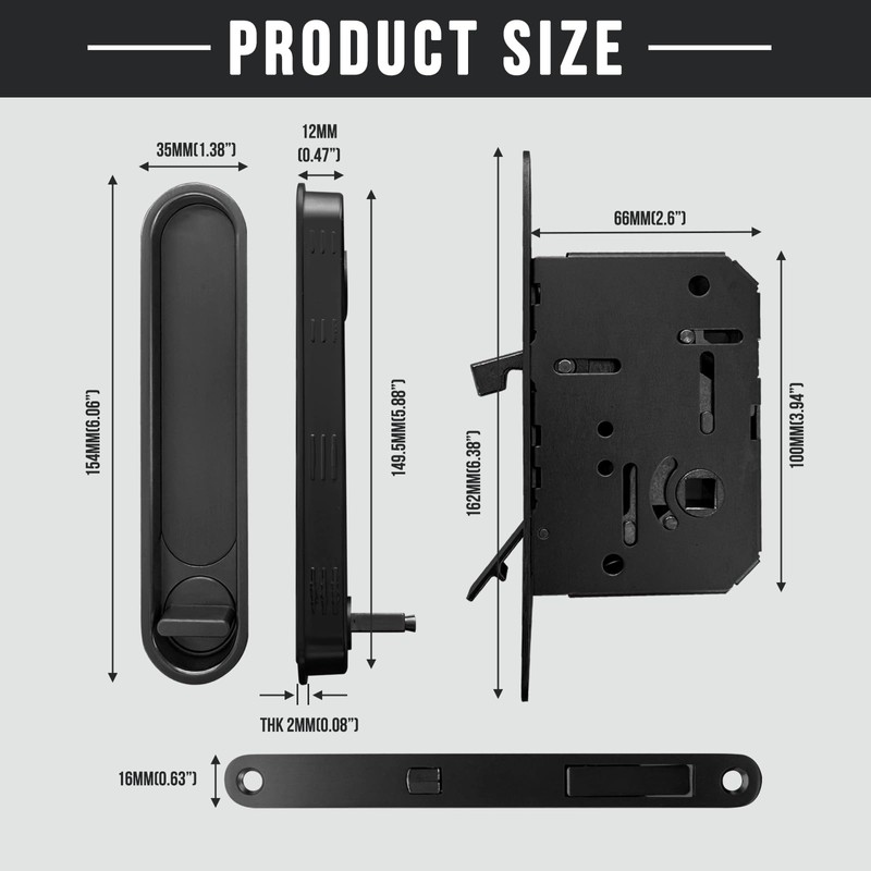 Pocket Door Lock and Pulls,Privacy Sliding Door Lock, Hidden Finger Pull, 6 Inch Recessed Flush Door Pull Handles,Keyless,Matt Black
