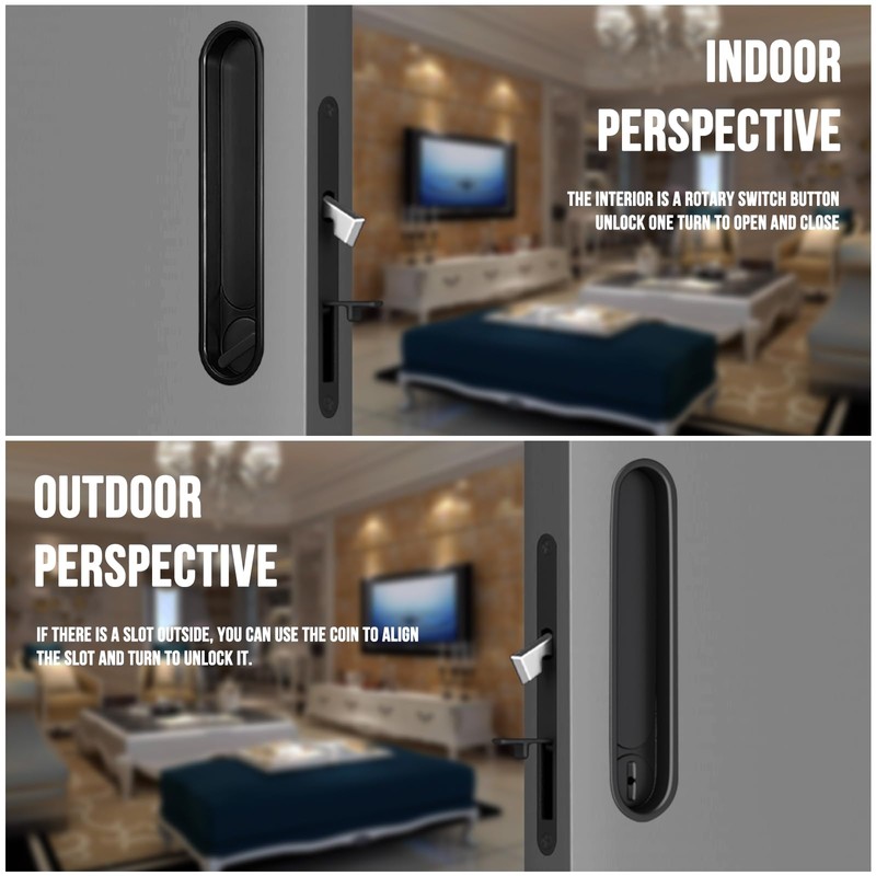 - 2-in-1 Sliding Door Lock: Privacy door lock is no keyhole outside the door. The opening and closing lock can be controlled with a knob inside the handle. The edge pull handle is hidden. When needed, just pull it gently
