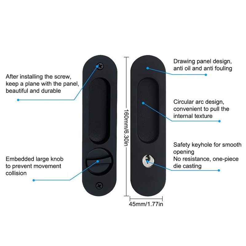 - 【CHOOSE HIGH QUALITY MATERIALS】Sliding Pocket Door Lock is made of high-quality copper material, and the lock body of the pocket door lock is made of zinc alloy. The surface electroplating is smooth and feels excellent, without roughness. The design of anti-corrosion coating makes the door lock more wear-resistant, dirt-resistant and anti-corrosion. Dust, oil resistant and durable.