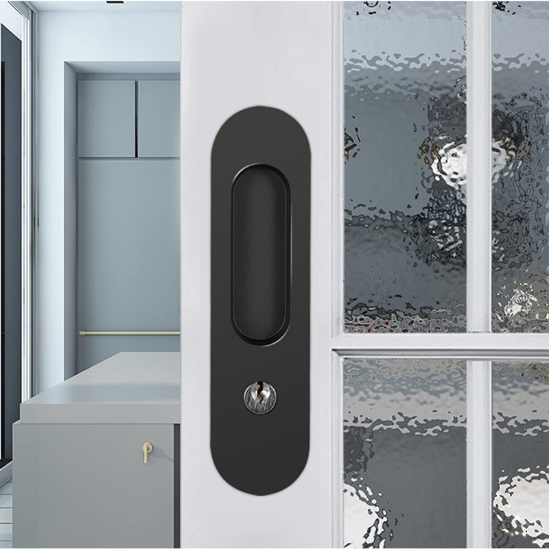 Pocket Door Lock Hardware with Key, Sliding Door Lock Invisible Recessed Handle Double Barn Door Lock Suitable for Bedroom, Kitchen, barn, etc. Black