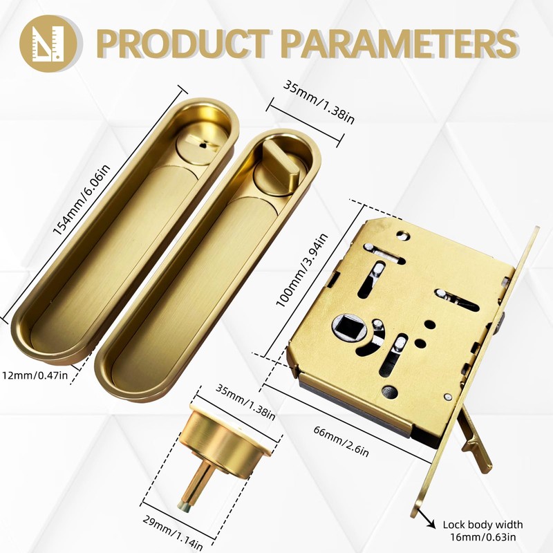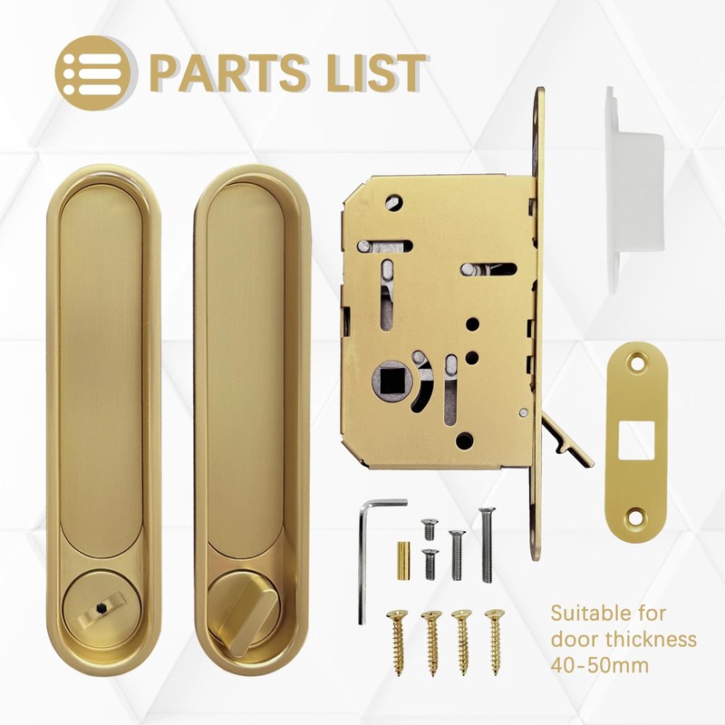 Pocket Door Lock with Pull, Privacy Sliding Door Handle Lock Barn Door Lock (Gold)