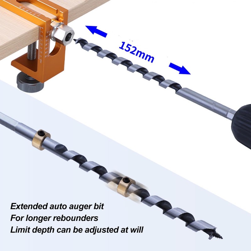 - Extended drill: drill template set for pocket hole wooden dowels, equipped with an extended automatic auger drill for longer rebounds. Bring deeper holes and a wider range of applications