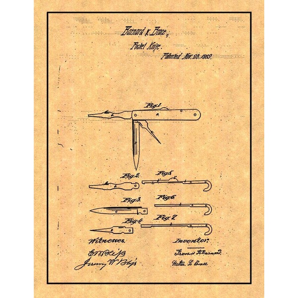 Pocket Knife Patent Print with Border (16" x 20") M13745