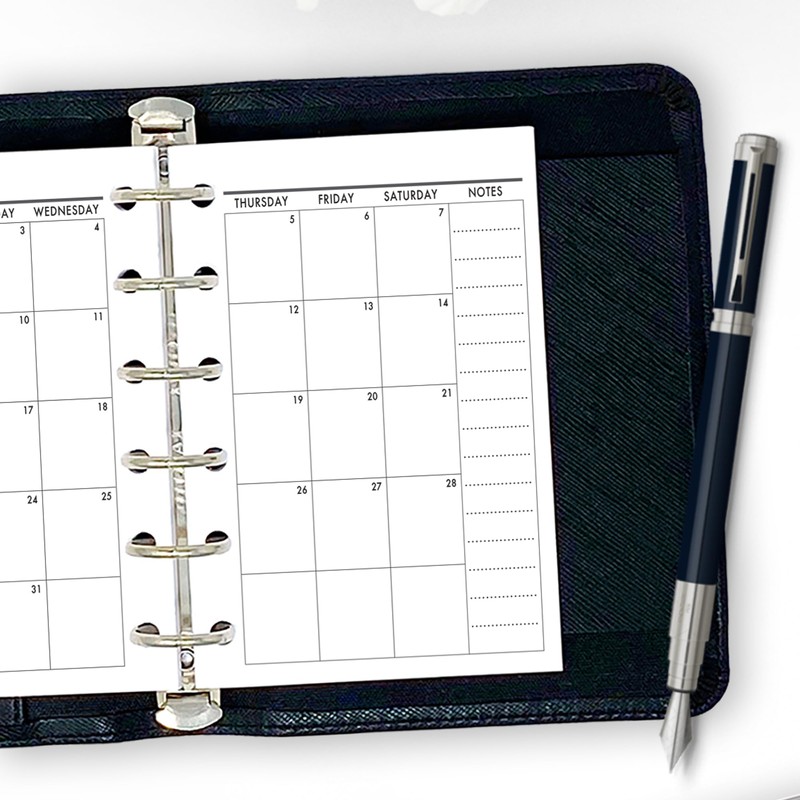 Stay organized your way with our Pocket Size Month on Two Pages calendar refill — now available in both Academic (July–June) and Standard (January–December) formats. Choose your layout, date range, punch style, and corner finish before adding to cart. This calendar is a made-to-order item, tailored to your selected preferences and carefully printed just for your planning needs.