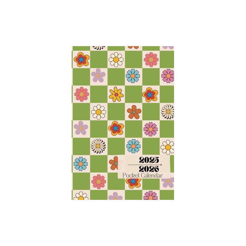 Pocket Planner Calendar 2025-2026 – Small 2-Year Monthly Planner, Cute Checkered Daisy Design Cover, Password Tracker, Notes Page, and Important Dates ... Organizer for Purse or Bag to stay Organized