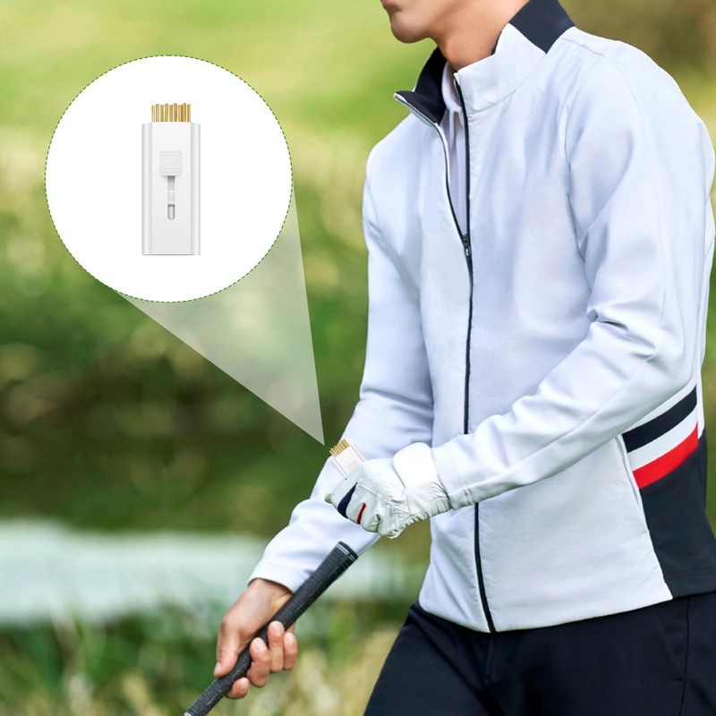 - 【Multi-functional Design】: The retractable golf club brush features a dual-sided design, with one side equipped with brass bristles for cleaning golf clubs, and the other side with a pointed tip for cleaning grooves. This design allows golf enthusiasts to easily clean their clubs on the course, maintaining the cleanliness of their clubs and equipment.