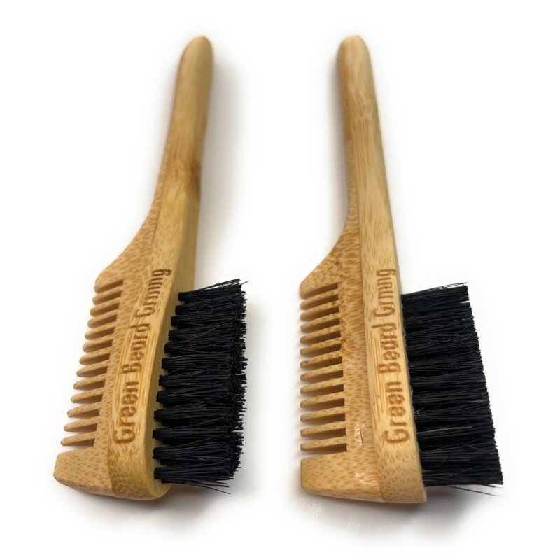 2-in-1 Pocket Sapling Mustache Brush & Comb (2-Pack) from Green Beard Grmng - Boar Bristle & Bamboo