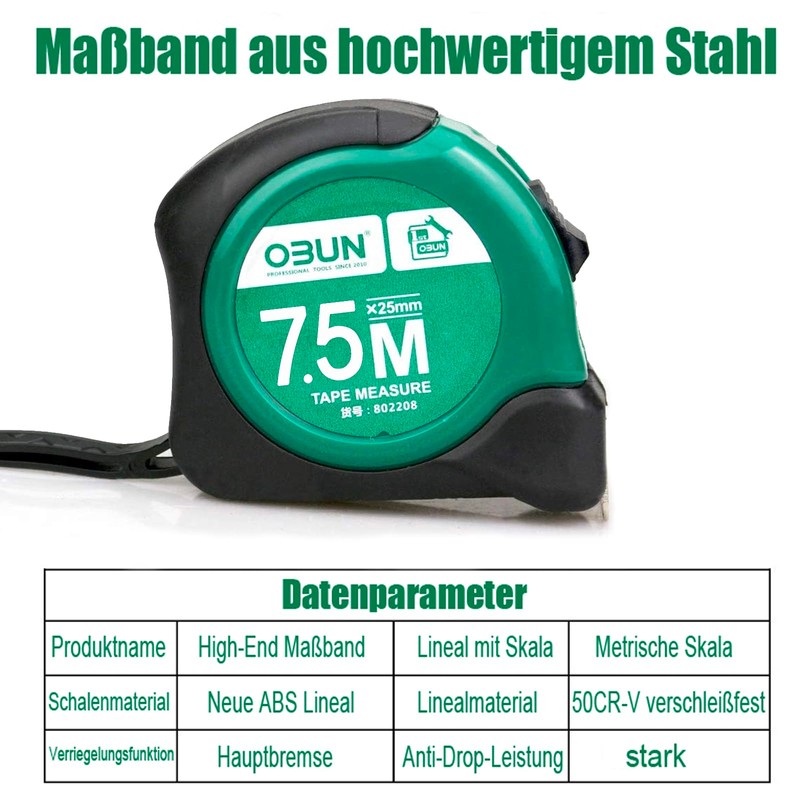 Pocket Tape Measure with Metric Scale, Viewing Window for Direct Reading, Shatterproof ABS Housing, Movable Start Hook, Belt Clip (2 Pieces - 7.5 m)