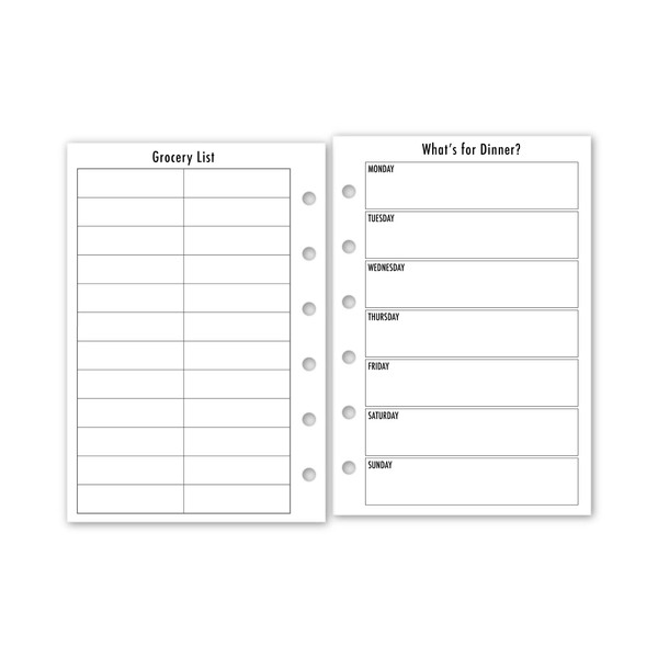 Pocket What's for Dinner Planner Insert Refill, 3.2 x 4.7 inches, Pre-Punched for 6-Rings to Fit Filofax, LV PM, Kikki K, Moterm and Other Binders, 30 Sheets Per Pack