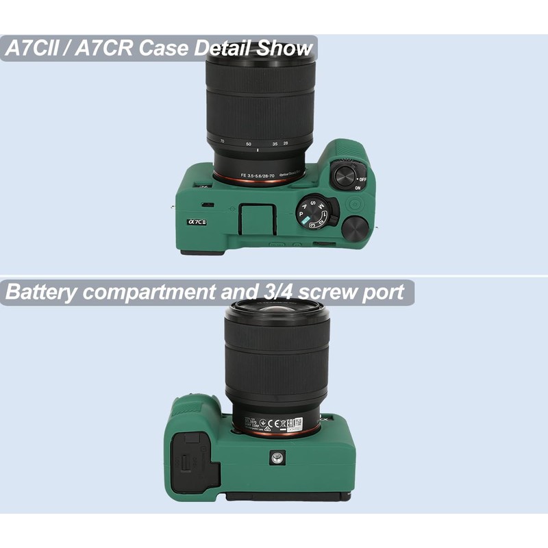 - Ajuste perfecto: diseñado a medida para cámara Sony Alpha 7C II / 7CR. Cada incisión en la funda de silicona es precisa, todos los botones están disponibles, incluyendo puerto de datos y parte de la batería. Diseño especial que te permite girar libremente la visualización de la cámara A7C II / A7CR.
