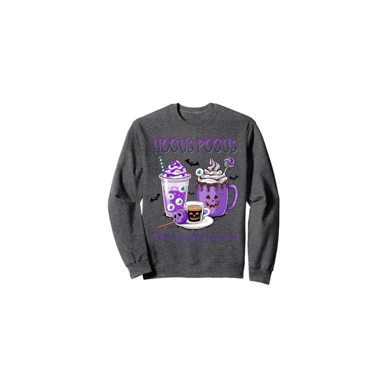 - Pocus Hocus Coffee Drinks Tshirt shows purple Halloween drinks with eyeballs, jack o lantern mug, and the phrase pocus I need coffee to focus, great for coffee lovers, witches, teachers, students, Halloween fans, and anyone who needs caffeine to