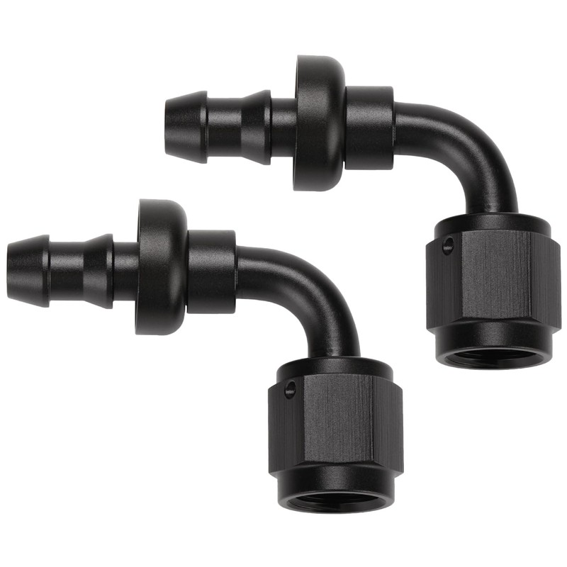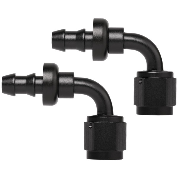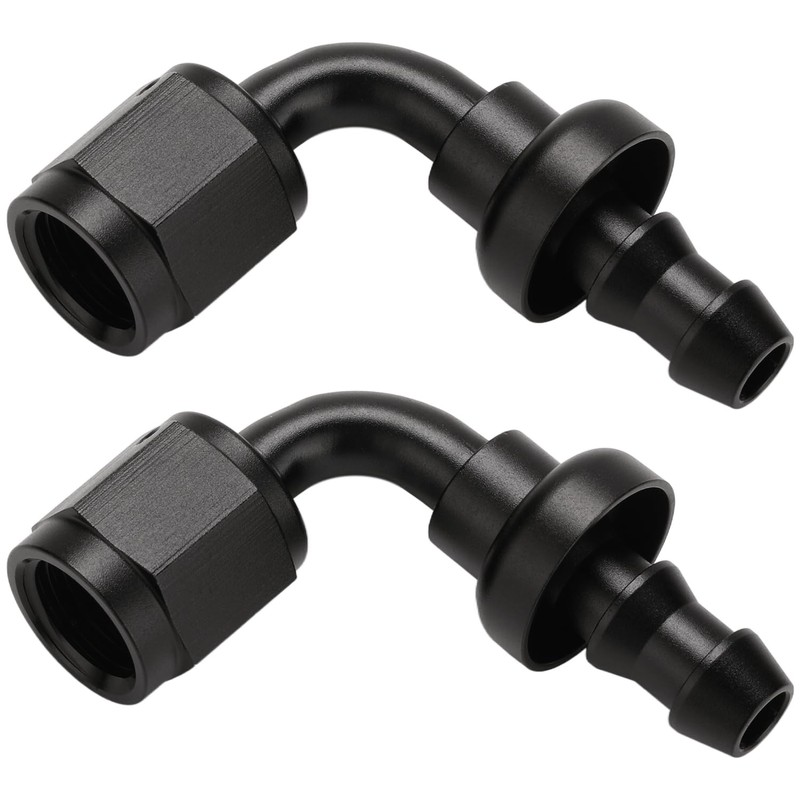 - Size: AN4 (7/16-20 UNF) female flare to 1/4" barb, 90 degree, Pack of 2. For use with 1/4" ID push-on rubber fuel hose only. WILL NOT work with stainless braided hose, nylon braided hose, or PTFE hose