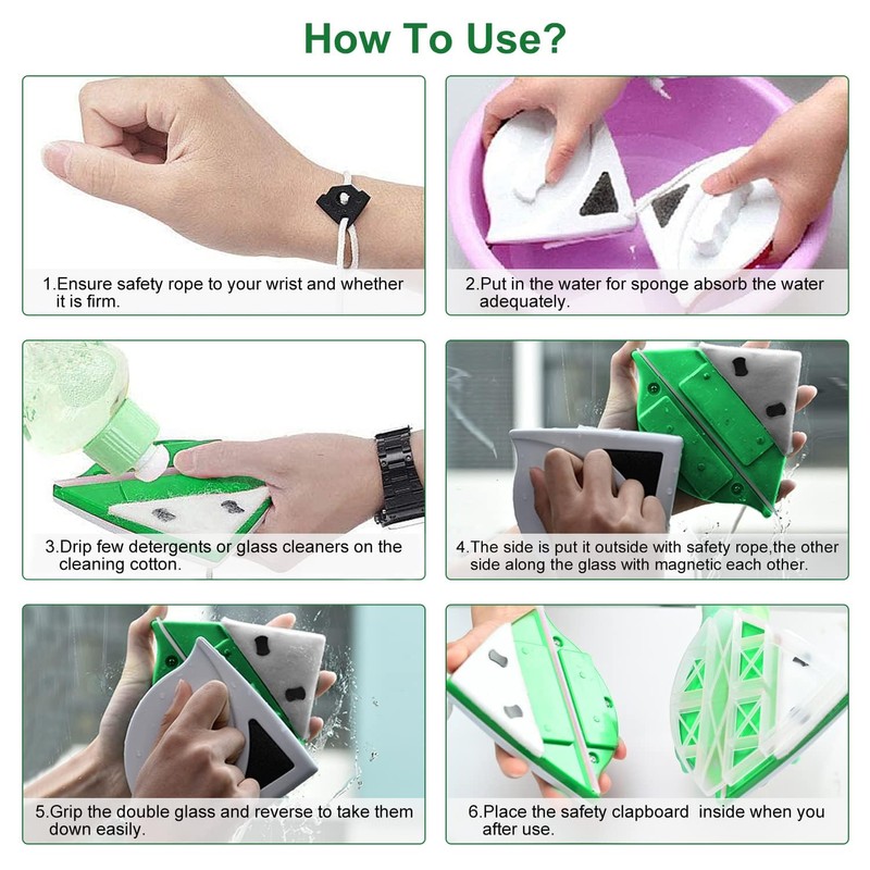 - Outil de nettoyage magnétique double face efficace: with a puissant design magnétique double face, cet outil de nettoyage de verre peut vous éviter de risquer de vous pencher. Il est mieux que les anciens outils de nettoyage de verre ordinaires, nettoie plus rapidement, et est même de plus haut niveau de verre. Bon compagnon.