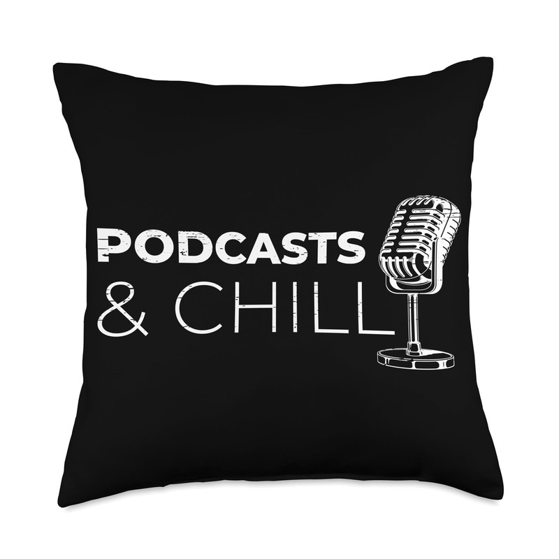 Podcasts And Chill Vintage Microphone Lover Throw Pillow