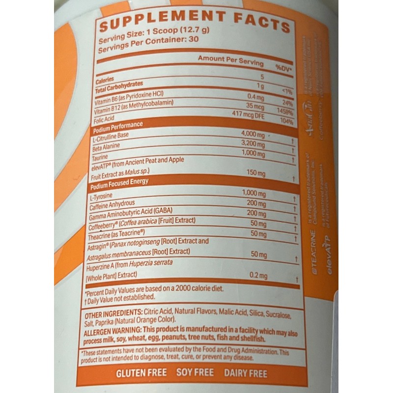 PODIUM FUSE Pre Workout - Orange Dream Pop (30 Servings) exp 6/2025