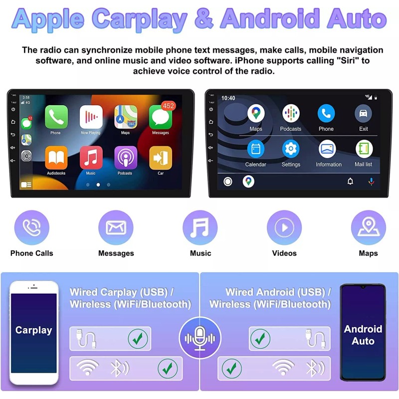 - You can use phone maps, send messages, make or answer phone calls, listen to music, and play videos on this car radio screen when connected. Support Siri voice assistant and gogle assistant