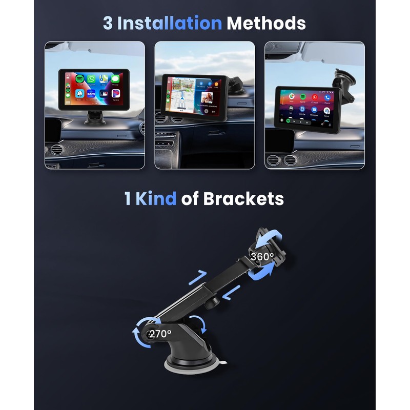 - 2.Wireless Carplay Portable Car Stereo: The carplay screen support wireless Car Play and Android Auto, you could more easily access the apps of your phone. You can also able to wake up the voice assistant Siri to operate Apps on this portable carplay car radio, easily use GPS navigation, calls, message, music, and much more functions while keeping your hands-free for safe driving