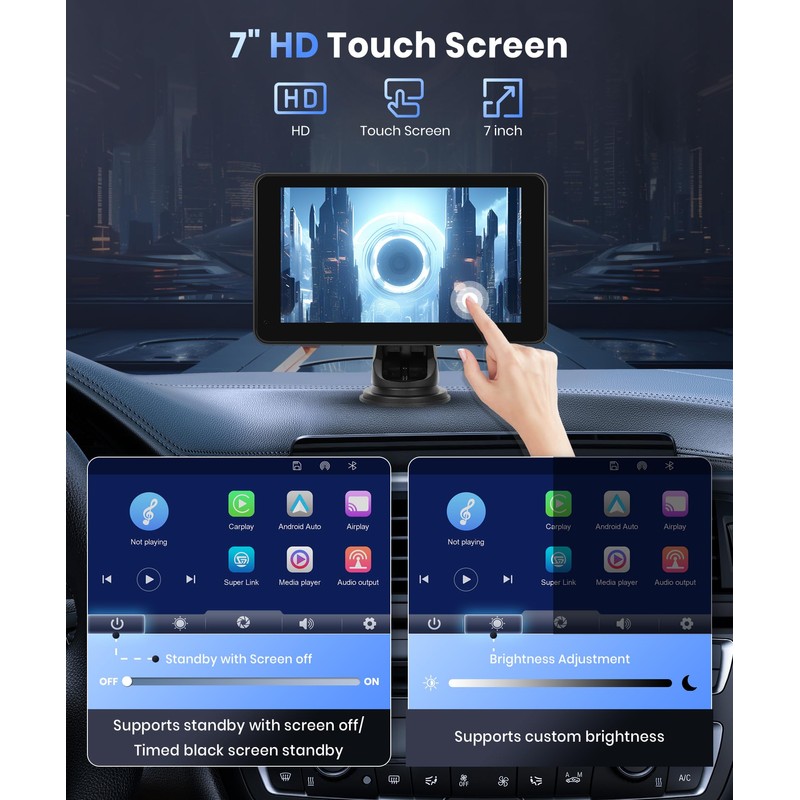 - 3.Easy Installation Fit All Different Car: Plug and play directly with dashboard via connect cigarette lighter.You don't need to disassemble your car's console, keep your car original radio, perfect coexistence. The apple car play screen is suitable for most motor vehicles, such as cars, trucks, vans, buses, pickups,sedans, RVs, campers, and more