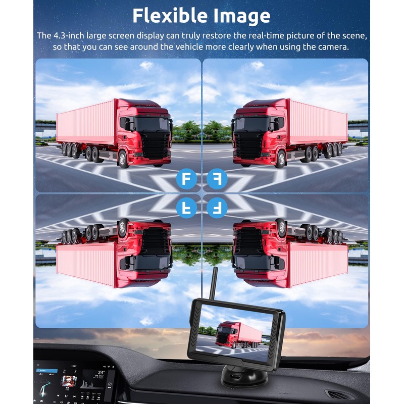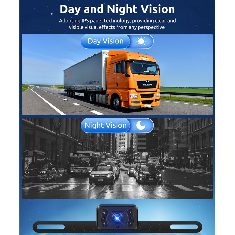 - Stable Digital Signal Backup Camera System: The wireless camera with the latest technology transmits video images through digital wireless signals, which is clearer than other wireless cameras and has strong anti-interference. Compared with previous products, the performance is improved by 50%. At the same time, it has ip69 waterproof function and is not afraid of the influence of bad weather