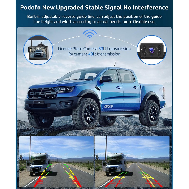 - Adjustable Reverse Guide Lines: The wireless reverse camera with a monitor allows you to adjust the width of the guide lines. You can move the guide lines left, right, up, or down according to your specific needs. Additionally, you can also disable the guide lines on the wireless reverse camera according to your personal preference
