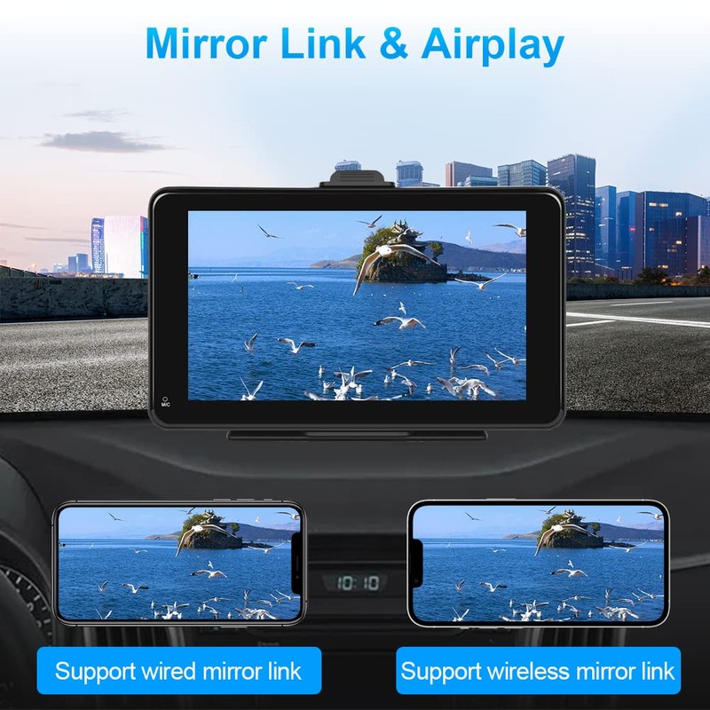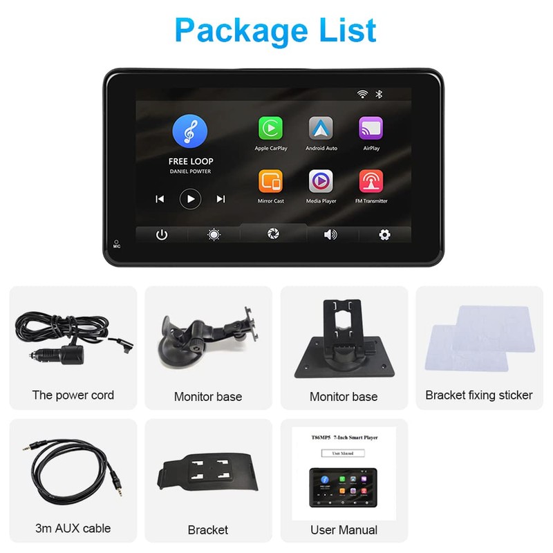 - [Easy Installation & Cost Saving] - The kit includes a vertical bracket and a suction cup mount. The Carplay 7 inch radio can be attached to the windscreen with the vertical holder or with a strong suction cup, so you can save installation costs and time.