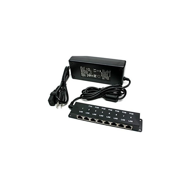 - Simplify installations with a multi-port midspan injector PoE adapter. Our 8 port PoE injector features 8 Data In (LAN) ports with 8 Data + Power Out (PoE) ports. Includes a compatible PoE injector 48V 120W power supply.