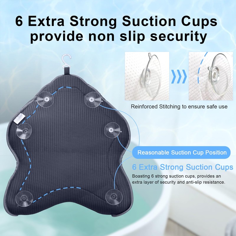 - POWERFUL ANTI-SLIP SUCTION CUPS: Our bath pillow for soaking is equipped with 6 powerful large suction cups. Make the bathtub pillow be sucked more firmly and prevent it from slipping off easily.