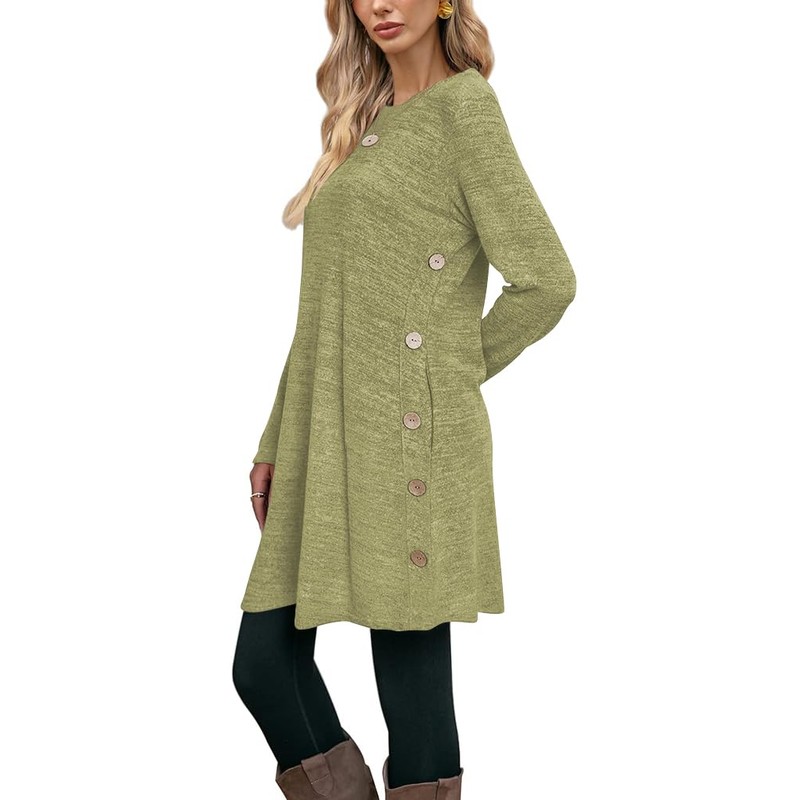 - Feature:Stay cozy and comfy in this Side Slit Pocket Tunic Shirt!A round neckline and side Buttons details make it the perfect go-to for just about any occasion-dress it up or dress it down Plus,it’s totally basic-but in the best way possible!(Seriously,you will never want to take it off!)