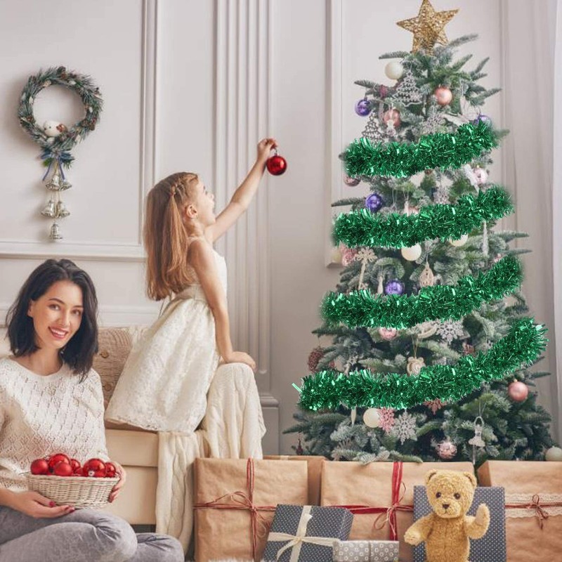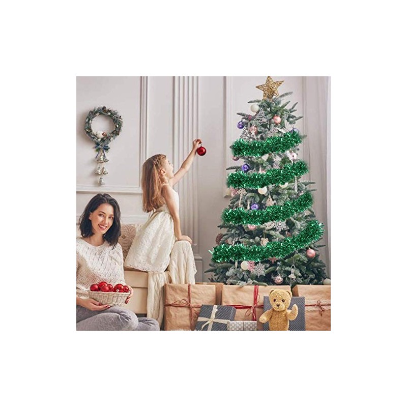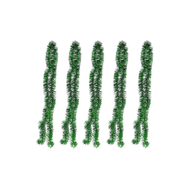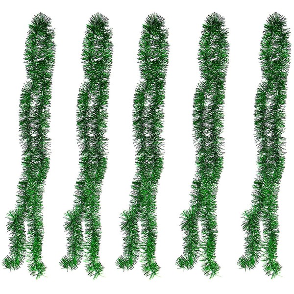 POFET 5pcs Green Tinsel Garland 2M Metallic Glitter Hanging Decoration for Christmas Tree Wreath Wedding Party