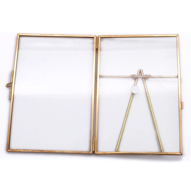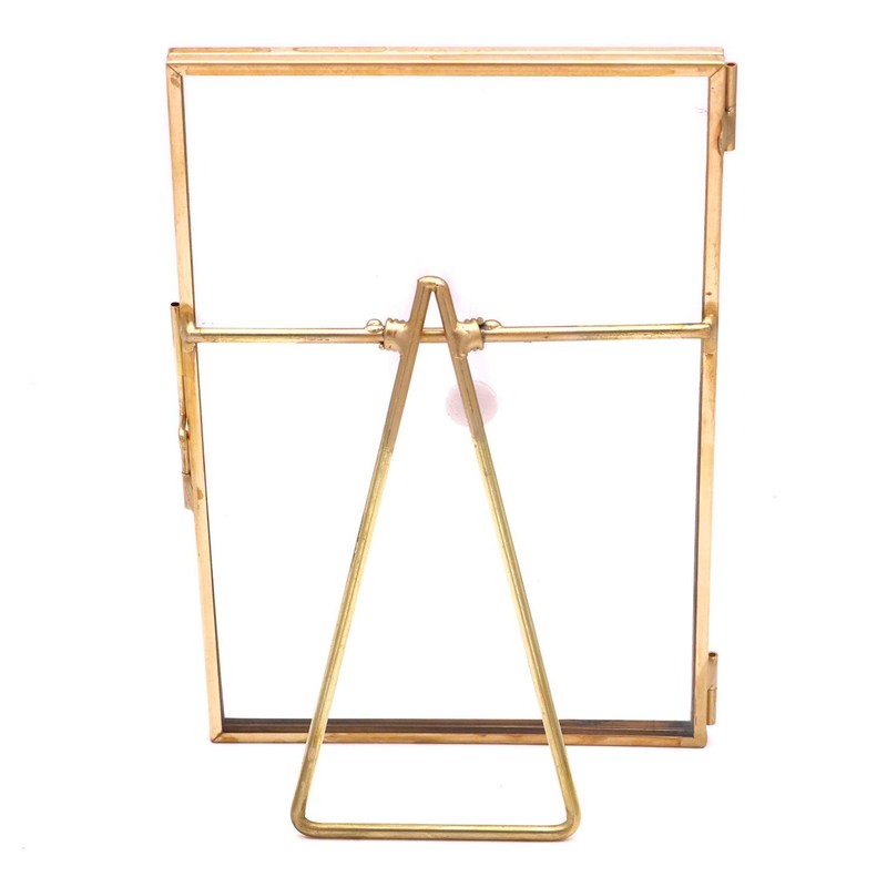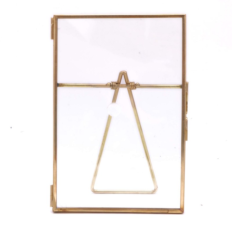 - These geometric frames are surrounded by a subtle brass edge and fitted with a latch for opening and closing. Display photos, pressed flowers and much more with a modern feel.