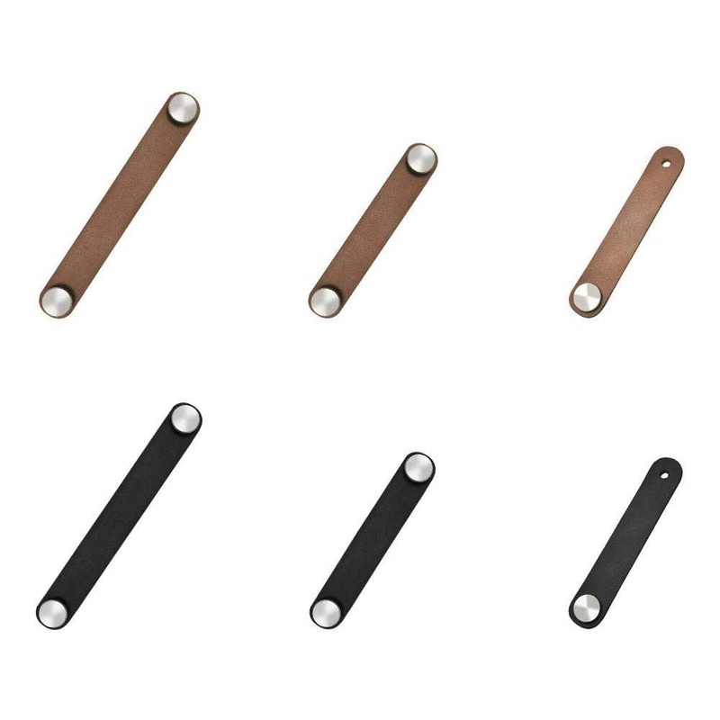 POFET Pack of 5 Nordic Wardrobe Door Handles, Soft PU Leather Door Handles for Cupboard, Drawer, Pull Knobs, Furniture Fittings (26 x 170 mm) - Brown