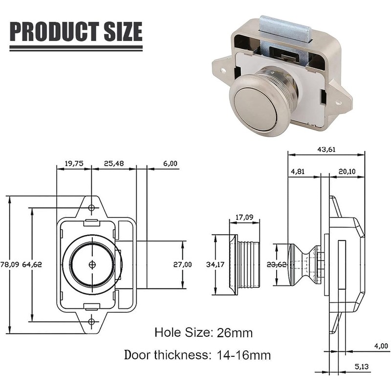 POFET Push Button Latch Knob Housing Lock Cupboard Door Drawer Lock Tool TP005-CH