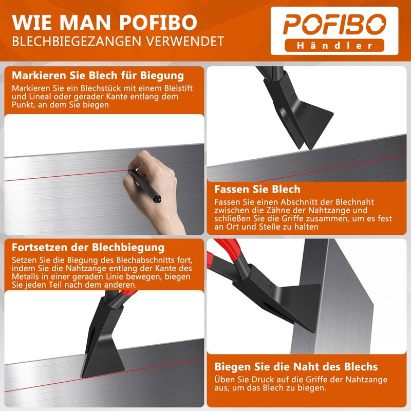 POFIBO Folding Pliers 45°, Folding Pliers 6 cm Wide with Non-Slip Handle and Gloves - For Bending and Smoothing Sheet Metal, Roofing Tool for DIY Enthusiasts