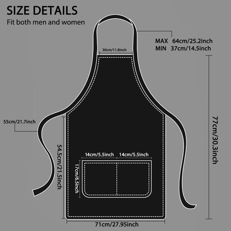- [Apron With 2 Pockets ]-The apron has 2 pockets for cooking utensils, barbecue utensils,keys, grill slips, phones, recipe cards ,seasoning packets, etc.This kind of thoughtful design won't leave us without a place to put the things we need when we cook and bake.