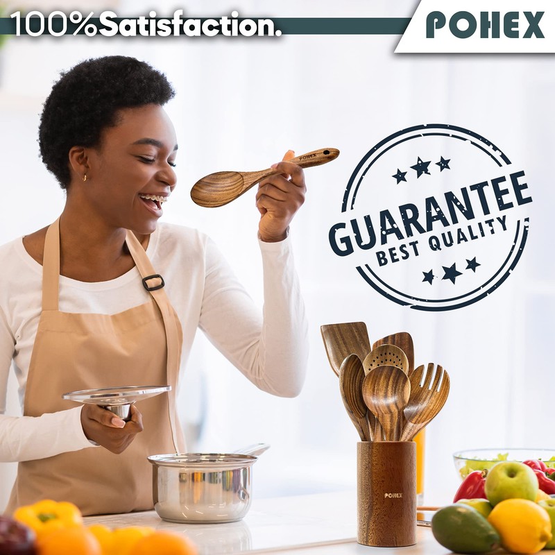 - Natural and Non-Toxic - Our BPA free wooden cooking gadgets are made from the finest quality natural teak wood, no dyes or artificial colors ever used or added to Pohex utensils.